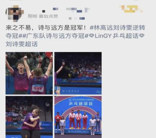 这也是刘诗雯第六次参加全运会。刘诗雯上一届与许昕搭档混双夺冠后,本届全运会和林高远混双再次夺冠。
